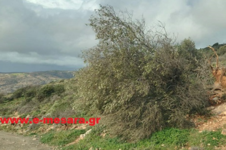Οι ισχυροί άνεμοι και τα έντονα καιρικά φαινόμενα οδήγησαν στο ξερίζωμα ελαιόδεντρου