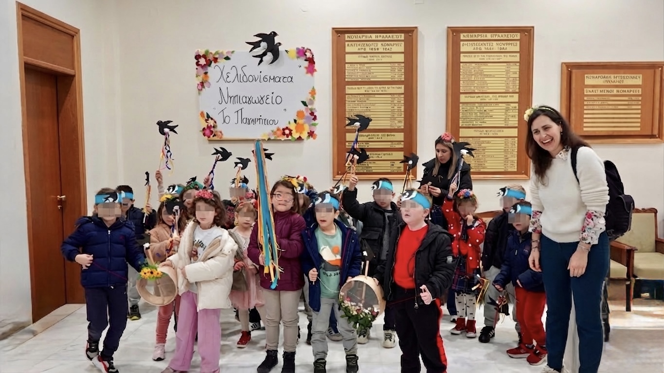 Το χαρμόσυνο μήνυμα της άνοιξης έφεραν στην Περιφέρεια Κρήτης οι μικροί μαθητές από το νηπιαγωγείο «Το Παγκρήτιον». Τα παιδιά, συνοδευόμενα από εκπαιδευτικούς και γονείς, επισκέφθηκαν τον χώρο της Περιφέρειας κρατώντας παραδοσιακά ομοιώματα χελιδονιών και πολύχρωμες χειροτεχνίες, προκειμένου να αναβιώσουν το έθιμο και να τραγουδήσουν τα «χελιδονίσματα».