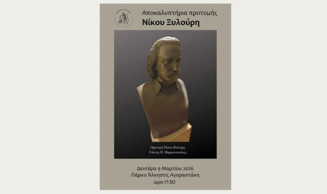 Τα αποκαλυπτήρια της προτομής του σπουδαίου Κρητικού καλλιτέχνη, Νίκου Ξυλούρη, θα πραγματοποιήσει ο Δήμος Χανίων τη Δευτέρα 9 Μαρτίου 2026, στις 17:30, στο Πάρκο Άλκηστις Αγοραστάκη.