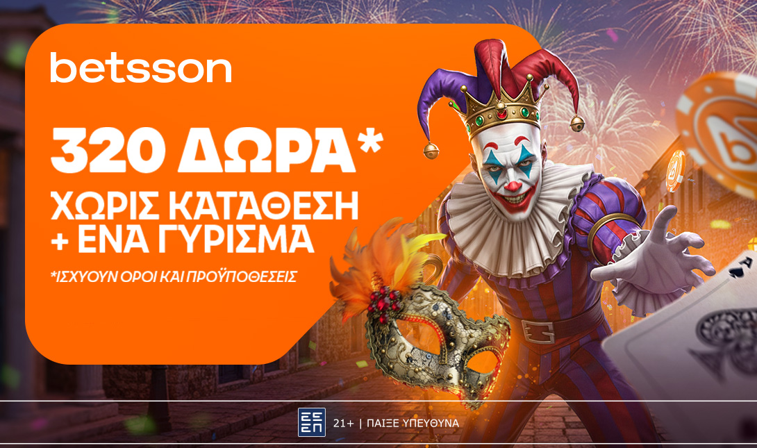 Betsson: Αποκριάτικη προσφορά με 320 δώρα χωρίς κατάθεση + ένα Γύρισμα στον Τροχό!
