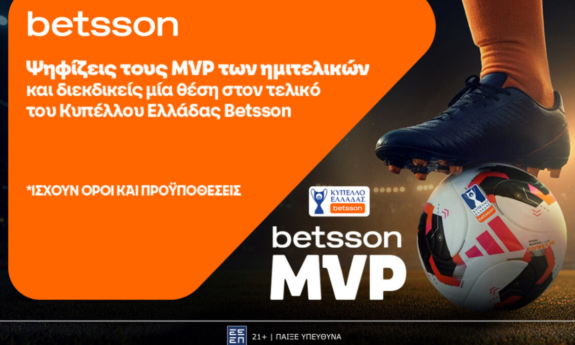 Η Betsson σου δίνει την ευκαιρία να συμμετάσχεις στη Betsson MVP Κλήρωση, να αναδείξεις τους κορυφαίους παίκτες της ημιτελικής φάσης και να διεκδικήσεις μια διπλή πρόσκληση για τον μεγάλο τελικό του Κυπέλλου Ελλάδας Betsson!