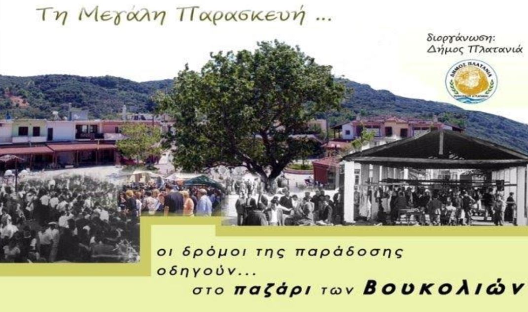 Ο Δήμος Πλατανιά σας προσκαλεί και φέτος, τη Μεγάλη Παρασκευή 10 Απριλίου, στο καθιερωμένο και Ιστορικό Παζάρι των Βουκολιών, έναν θεσμό με βαθιές ρίζες στην τοπική παράδοση, που χρονολογείται από τα τέλη του 19ου αιώνα.