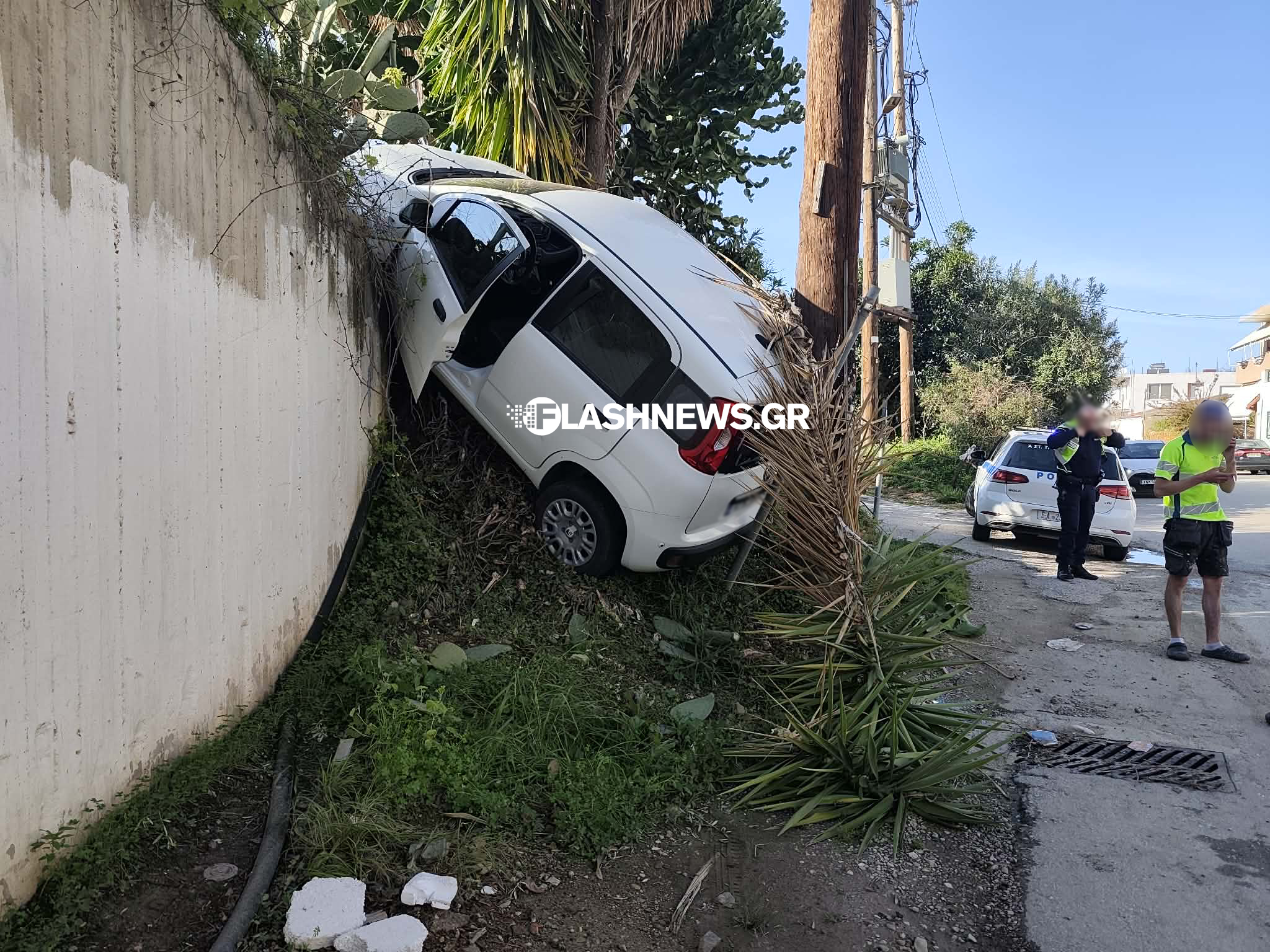 Χανιά: «Βουτιά» για αυτοκίνητο στην έξοδο του κόμβου Μουρνιών – Δείτε φωτογραφίες