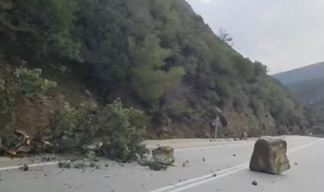 Χανιά: Βράχος έπεσε στη μέση του δρόμου σε περιοχή της Κισσάμου
