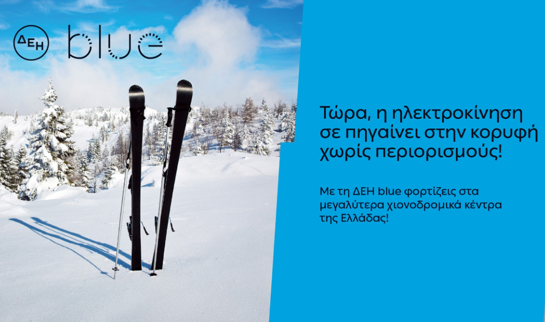 Συνολικά 54 σημεία φόρτισης λειτουργούν στα επτά μεγαλύτερα χιονοδρομικά κέντρα της χώρας, στο πλαίσιο ανάπτυξης του δημόσια προσβάσιμου δικτύου φόρτισης της ΔΕΗ blue, καθώς και της ενίσχυσης των υποδομών ηλεκτροκίνησης σε ορεινούς και χειμερινούς δημοφιλείς προορισμούς. Η επέκταση του δικτύου αφορά τα χιονοδρομικά κέντρα Παρνασσού, Βόρα, Βασιλίτσας, Ζήρειας, Καλαβρύτων, 3-5 Πηγαδιών και Σελίου.