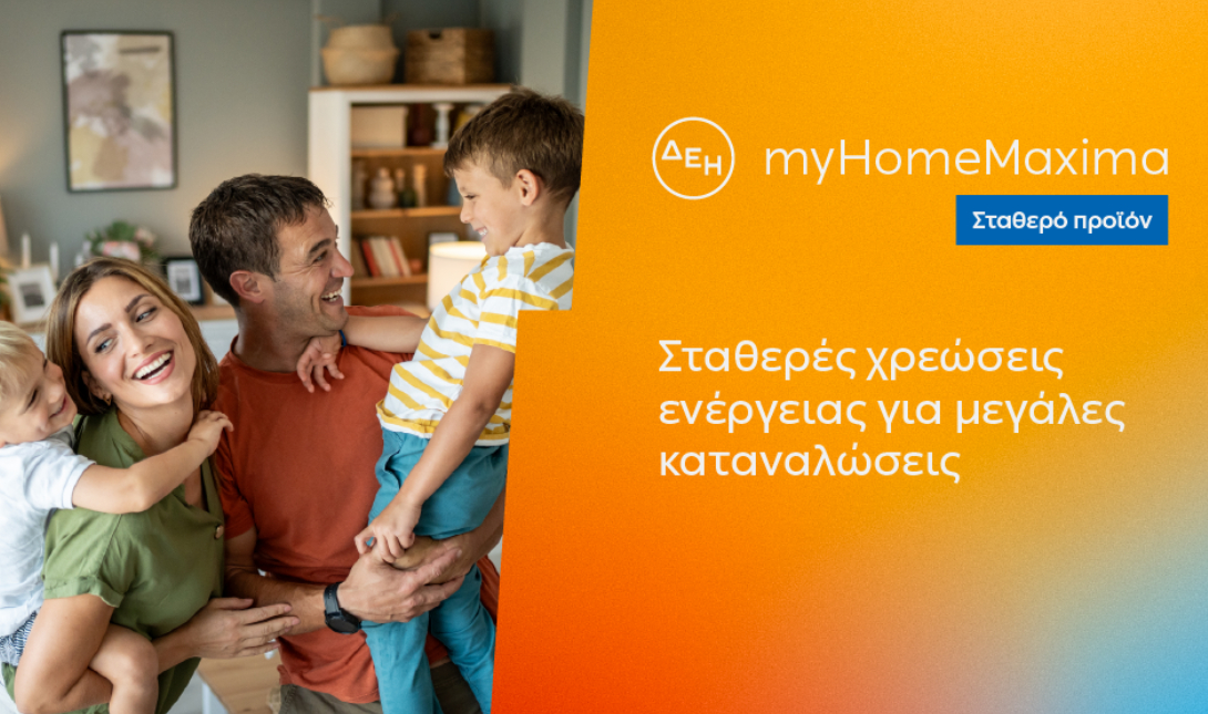 Η ΔΕΗ παρουσιάζει το ΔΕΗ myHome Maxima, το νέο σταθερό 12μηνο οικιακό προϊόν ρεύματος, ειδικά σχεδιασμένο για νοικοκυριά με αυξημένες ενεργειακές ανάγκες. Το προϊόν περιλαμβάνει δύο κλιμάκια κατανάλωσης και σταθερή χρέωση προμήθειας ανά κλιμάκιο, συνδυάζοντας σταθερότητα, προβλέψιμο και ανταγωνιστικό κόστος ενέργειας.