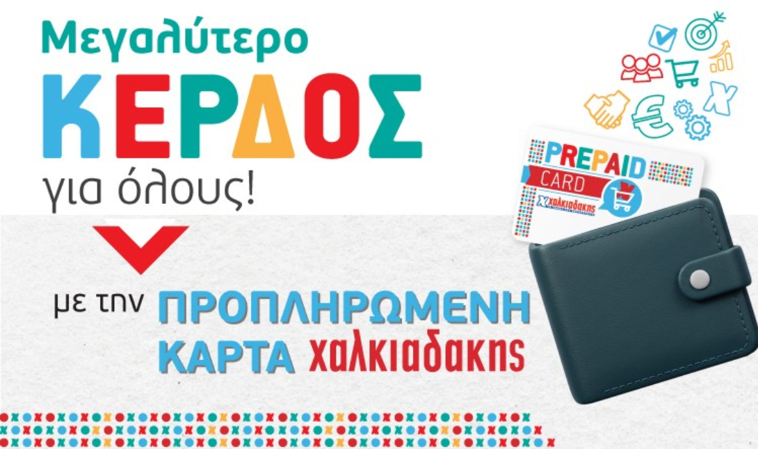 Επωφεληθείτε άμεσα εσείς και οι εργαζόμενοι σας από τα προνόμια της προπληρωμένης κάρτας αγορών Χαλκιαδάκης! Άνεση, ευκολία, διακριτικότητα, περισσότερη ελευθερία επιλογών, πάντα με την καλύτερη ποιότητα και τις καλύτερες προσφορές για τις αγορές σας!