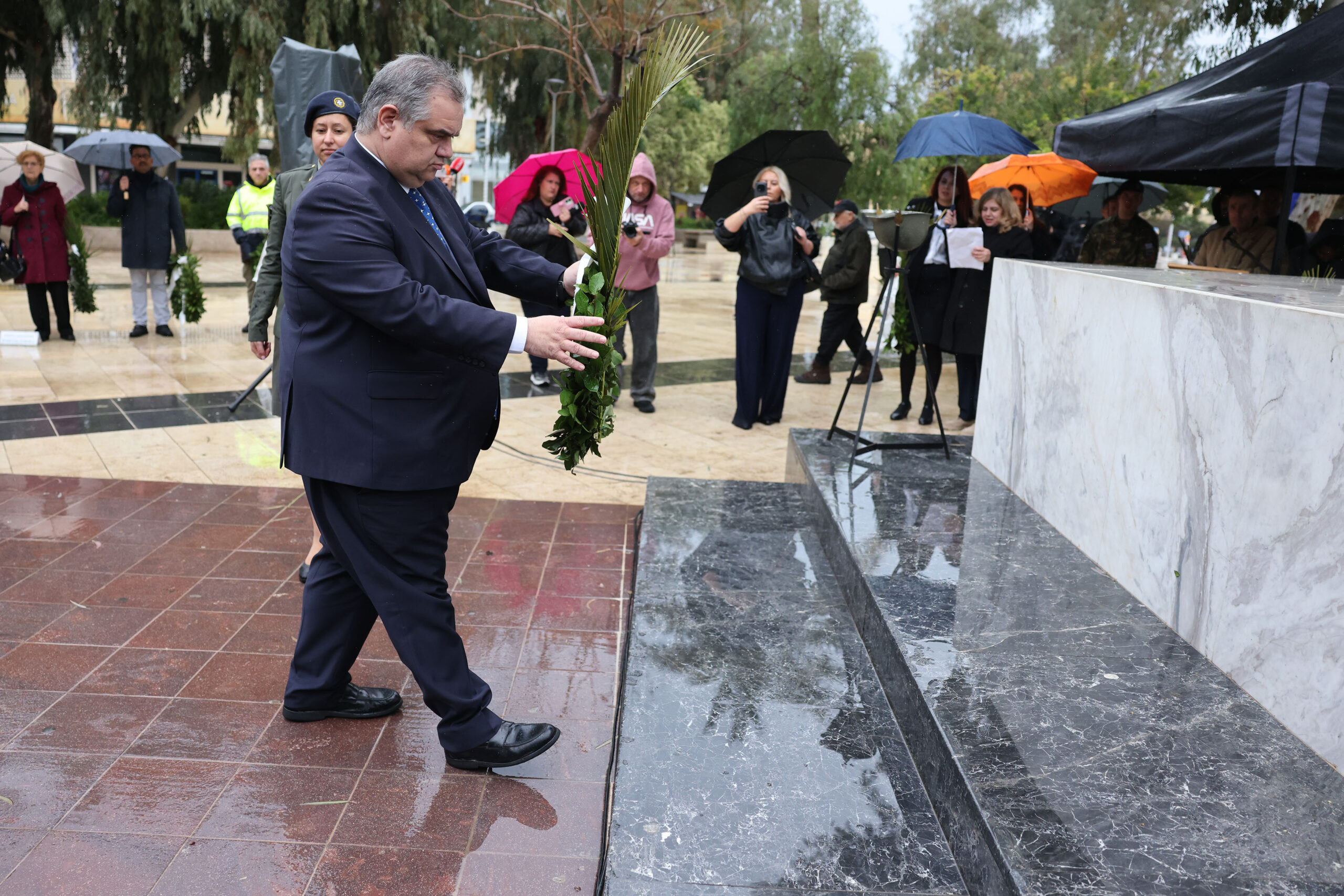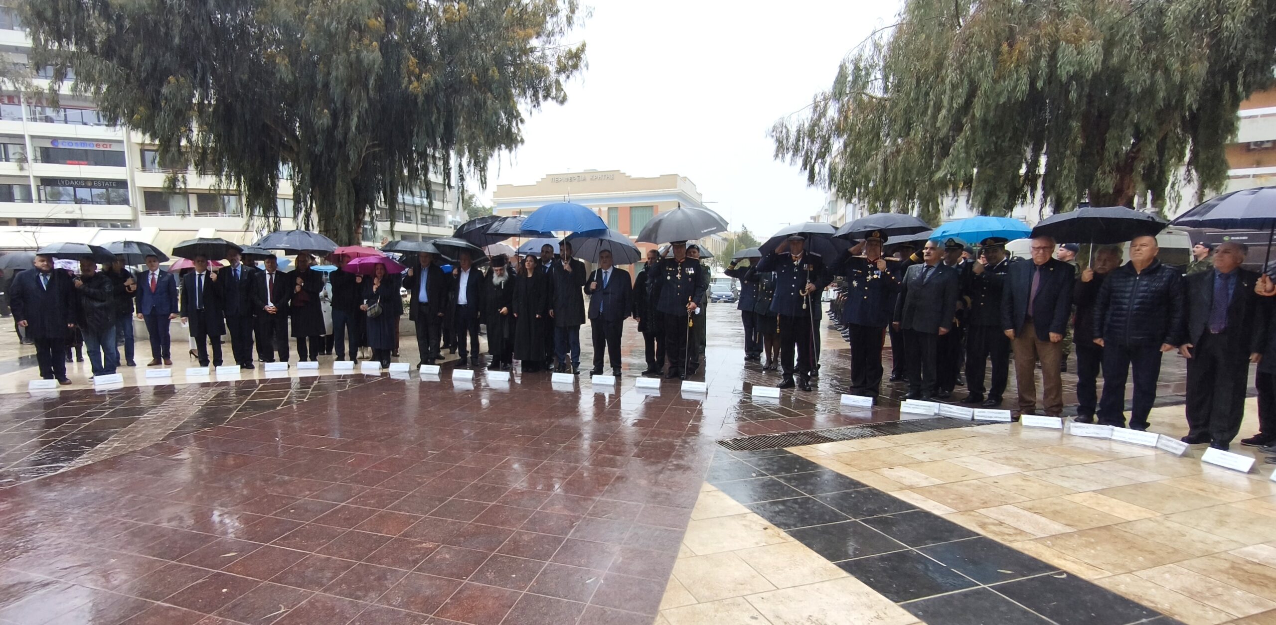 Την επιμνημόσυνη δέηση τέλεσε ο Σεβασμιότατος Αρχιεπίσκοπος Κρήτης κ.κ. Ευγένιος, ενώ στεφάνια κατέθεσαν ο εκπρόσωπος της Κυβέρνησης ο Υφυπουργός Εσωτερικών, Βασίλης -Πέτρος Σπανάκης, οι Βουλευτές Ηρακλείου Μάξιμος Σενετάκης, Κωνσταντίνος Κεφαλογιάννης, Ελένη Βατσινά, ο Περιφερειάρχης Κρήτης Σταύρος Αρναουτάκης, ο Δήμαρχος Ηρακλείου Αλέξης Καλοκαιρινός, η Συντονίστρια της Αποκεντρωμένης Διοίκησης Κρήτης Μαρία Κοζυράκη. Επίσης παρουσία του Αντιπεριφερειάρχη Ηρακλείου Νίκου Συριγωνάκη, του Προέδρου του Περιφερειακού Συμβουλίου Ευάγγελου Ζάχαρη, των Αντιπεριφερειαρχών Ελένης Μαράκη-Μπελαδάκη, Νίκου Σκουλά, στεφάνια κατέθεσαν: ο Ανώτερος Διοικητής Φρουράς Ηρακλείου, Πρυτανικές Αρχές, φορείς, εκπρόσωποι κοινοβουλευτικών κομμάτων, αποστράτων, Αναπήρων Θυμάτων Πολέμου, φορέων κ.α.