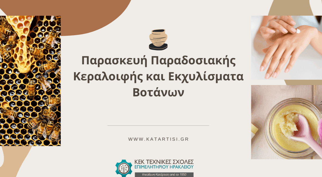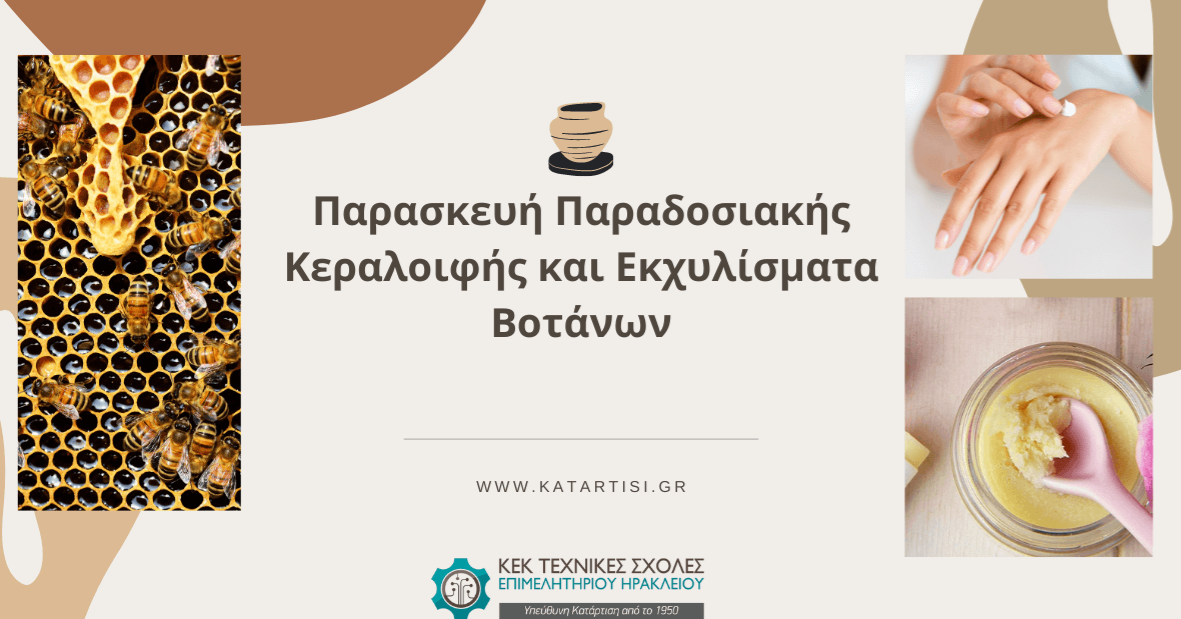Απευθύνεται: Σε όσους επιθυμούν να μάθουν να φτιάχνουν τη δική τους κεραλοιφή αλλά και σε όσους ασχολούνται με την μελισσοκομεία θέλουν να επεξεργαστούν τα μελισσοκομικά προϊόντα