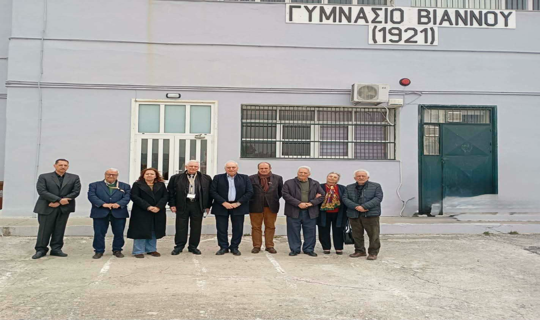 Η επίσκεψη στο Γυμνάσιο πραγματοποιήθηκε παρουσία του προέδρου της Ένωσης Θυμάτων Ολοκαυτώματος Βιάννου, Αριστομένη Συγγελάκη, και του προέδρου της Ένωσης Βιαννιτών Αττικής «ο Διαβάτης» κ. Γιώργο Στρατογιαννάκη