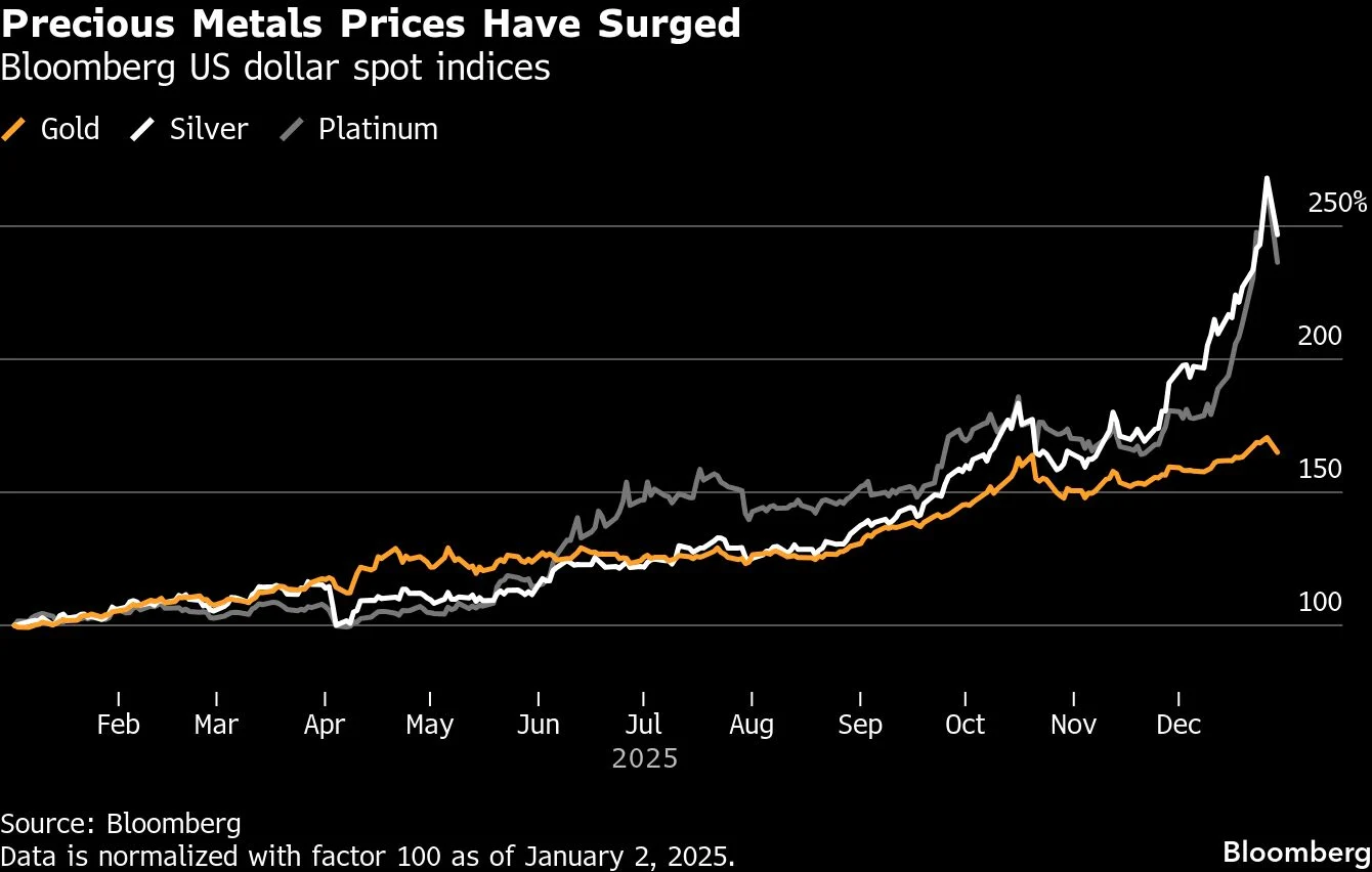 Η εταιρεία εξόρυξης χρυσού και αργύρου Fresnillo ήταν η μετοχή με την καλύτερη απόδοση του βρετανικού FTSE 100 το 2025, πενταπλασιάζοντας την αξία της. Η πολωνική εταιρεία παραγωγής χαλκού και αργύρου KGHM Polska Miedz υπερδιπλασιάστηκε.
