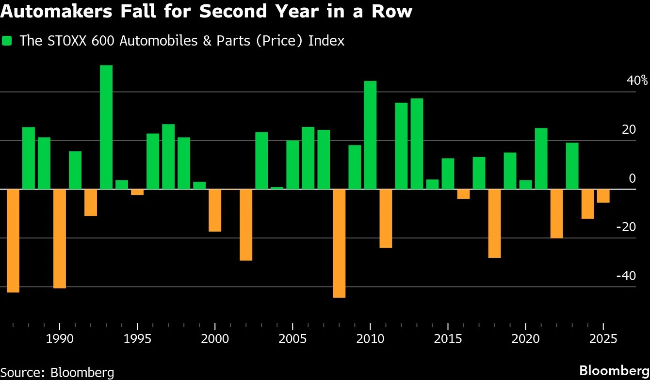 Δεύτερη χρονιά απωλειών ήταν το 2025 για τον κλάδο αυτοκινήτων και ανταλλακτικών της Ευρώπης, καθώς οι αυτοκινητοβιομηχανίες αντιμετώπισαν υποτονική ζήτηση, αυξημένο κόστος λόγω των δασμών και ανταγωνισμό από την Κίνα, την ώρα που ήδη δυσκολεύονταν με τη μετάβαση στην ηλεκτροκίνηση.