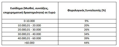 Β. Εισάγεται ενδιάμεσος συντελεστής από τα 40.000 έως τα 60.000 ευρώ 39%, ενώ ο συντελεστής 44% θα ισχύει για εισοδήματα άνω των 60.000 ευρώ.