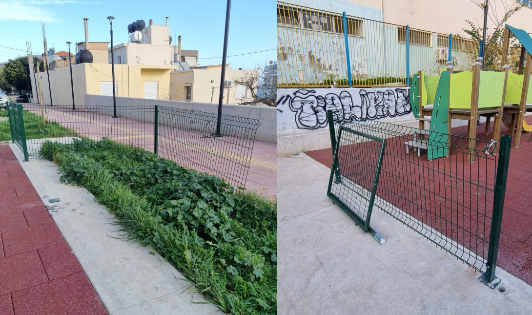 Αντίστοιχες εικόνες φθοράς καταγράφηκαν και στην παιδική χαρά στο Τσαλικάκι, σε έναν χώρο που διαμορφώνεται ώστε να προσφέρει ασφάλεια και στιγμές χαράς στα παιδιά της περιοχής, πριν ακόμη ολοκληρωθεί και παραδοθεί επίσημα στους δημότες.