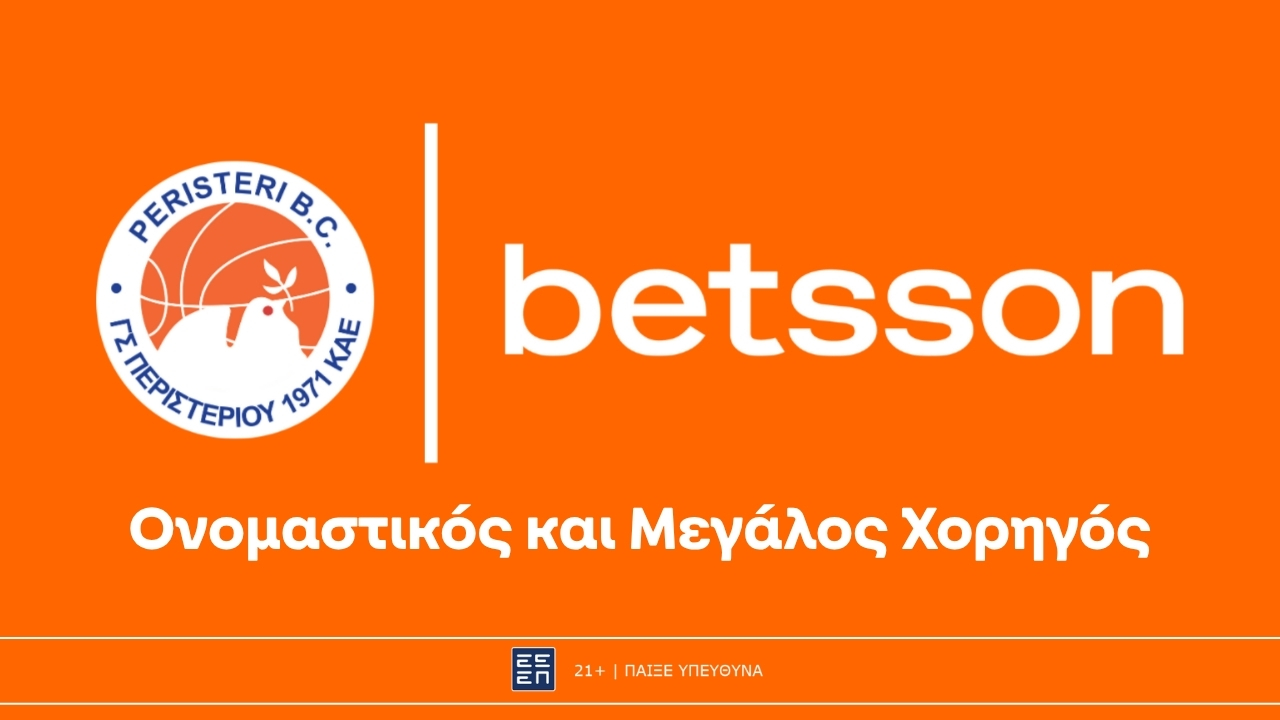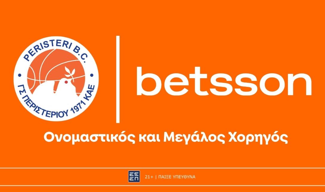 Η Betsson ανακοινώνει με χαρά τη χορηγία της στο Περιστέρι BC, αναλαμβάνοντας τον ρόλο του ονομαστικού και μεγάλου χορηγού της ομάδας για τις επόμενες δύο αγωνιστικές περιόδους.