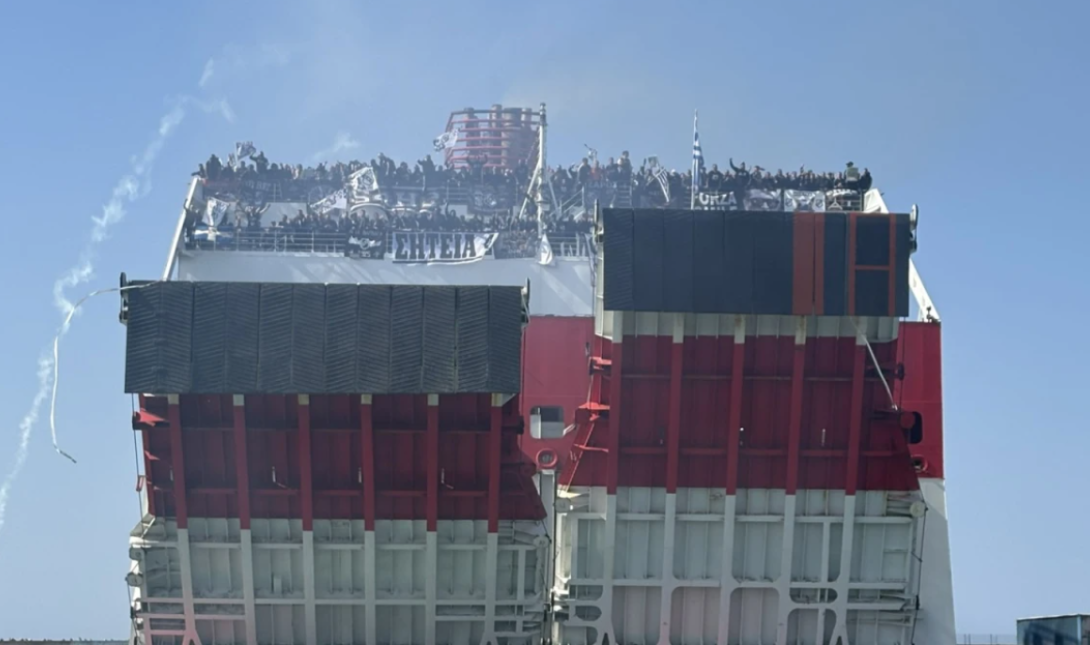 Το πλοίο είχε αναχωρήσει νωρίς το πρωί της Κυριακής από το λιμάνι του Πειραιά, με τους οπαδούς να συνεχίζουν το γιορτινό κλίμα καθ’ όλη τη διάρκεια του ταξιδιού, μετατρέποντας το κατάστρωμα σε ένα ατελείωτο πάρτι.