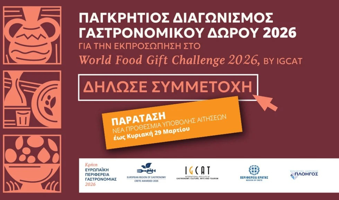 Παγκρήτιος Διαγωνισμός Γαστρονομικού Δώρου 2026 – “World Food Gift Challenge 2026”, by IGCAT – Κρήτη Ευρωπαϊκή Περιφέρεια Γαστρονομίας 2026 (Ανοικτή πρόσκληση συμμετοχής)