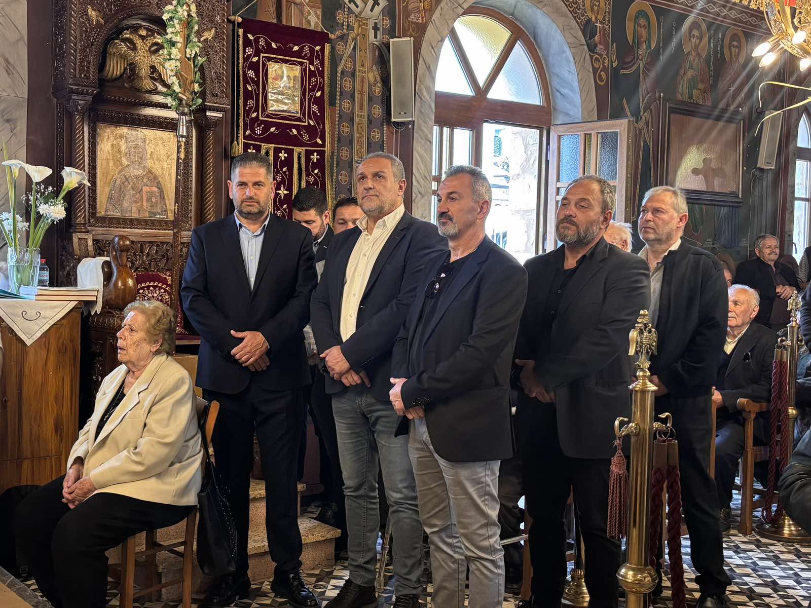 Στην εκκλησιαστική τελετή παρέστη ο Δήμαρχος Μυλοποτάμου κ. Γεώργιος Κλάδος, συνοδευόμενος από τους Αντιδημάρχους κ. Νύκταρη Αστρινό, κ. Βουκάλη Ιωσήφ, κ. Μιχόπουλο Δημήτριο και κ. Λαδιανό Ζαχαρία, τον Πρόεδρο της Κοινότητας Περάματος κ. Στεφανάκη Μιχαήλ, παρευρέθηκαν επίσης ο αντιπεριφερειάρχης επιχειρηματικότητας κ. Βάμβουκας Μιχαήλ και ο Εντεταλμένος Περιφερειακός Σύμβουλος Πολιτικής Προστασίας κ. Μιχαήλ Σαρρή, καθώς και η Ειδική Σύμβουλος Δημάρχου κ. Ειρήνη Κουτάντου.