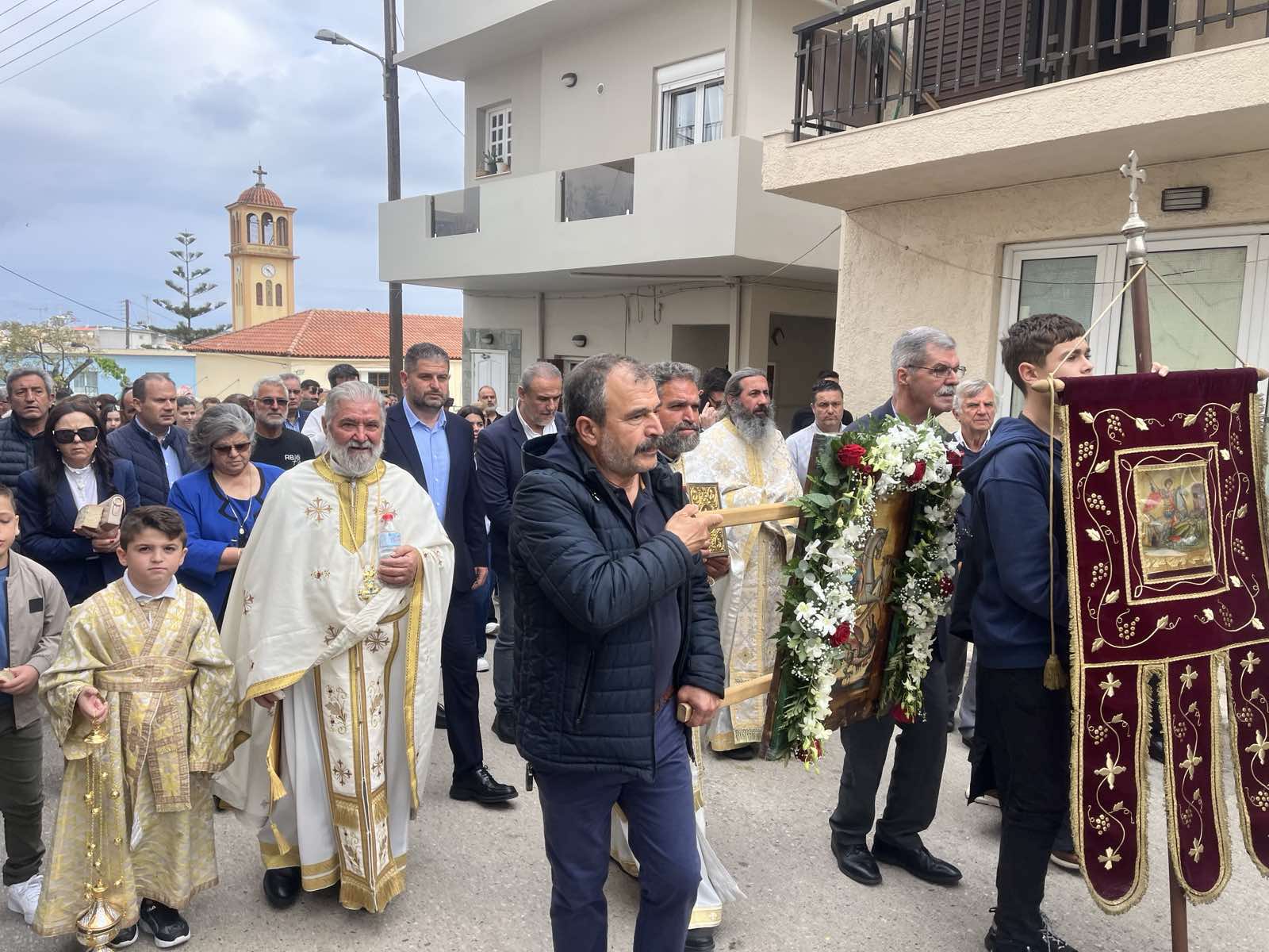 Ακολούθησε η λιτάνευση της Ιερής Εικόνας του Αγίου, με τη θερμή συμμετοχή του κόσμου, που με σεβασμό και κατάνυξη απέδωσε τιμή στον προστάτη του Περάματος.