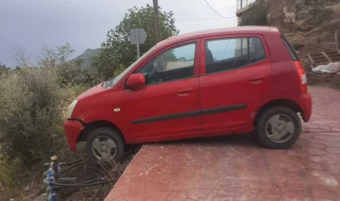 Οι ισχυροί άνεμοι στη Μεσαρά έφτασαν σε τέτοια ένταση που μετακίνησαν ακόμη και σταθμευμένο όχημα στον Ζαρό