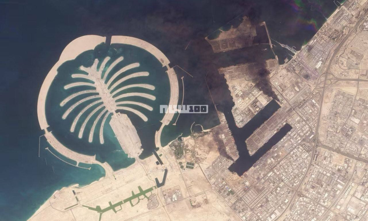 Δορυφορικές εικόνες που δημοσιοποιήθηκαν τις τελευταίες ώρες αποτυπώνουν πυκνούς καπνούς να υψώνονται πάνω από την περιοχή του λιμανιού στο Ντουμπάι.