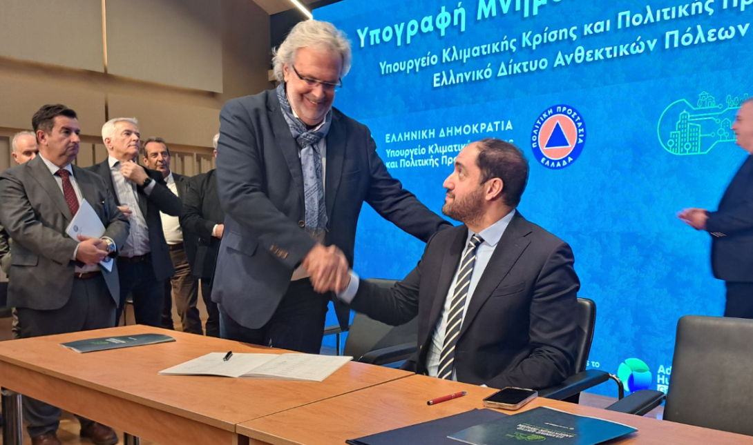 Μετά από πρόσκληση του Υπουργού Κλιματικής Κρίσης και Πολιτικής Προστασίας κ. Γιάννης Κεφαλογιάννης και του Προέδρου του Δ.Σ. του Ελληνικού Δικτύου Ανθεκτικών Πόλεων κ. Γιάννης Κωνσταντάτος, ο Δήμαρχος Σητείας κ Γιώργος Ζερβάκης παρευρέθηκε την Δευτέρα 30 Μαρτίου στην τελετή υπογραφής του Μνημονίου Συνεργασίας μεταξύ του Υπουργείου και του Δικτύου.