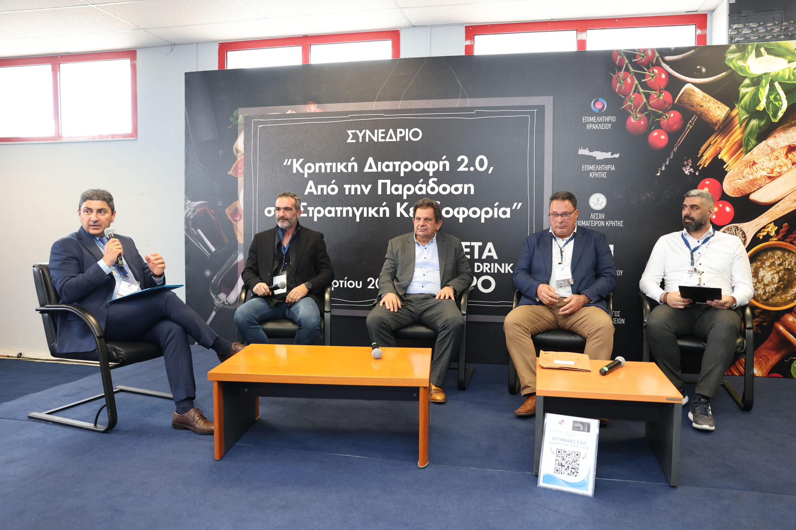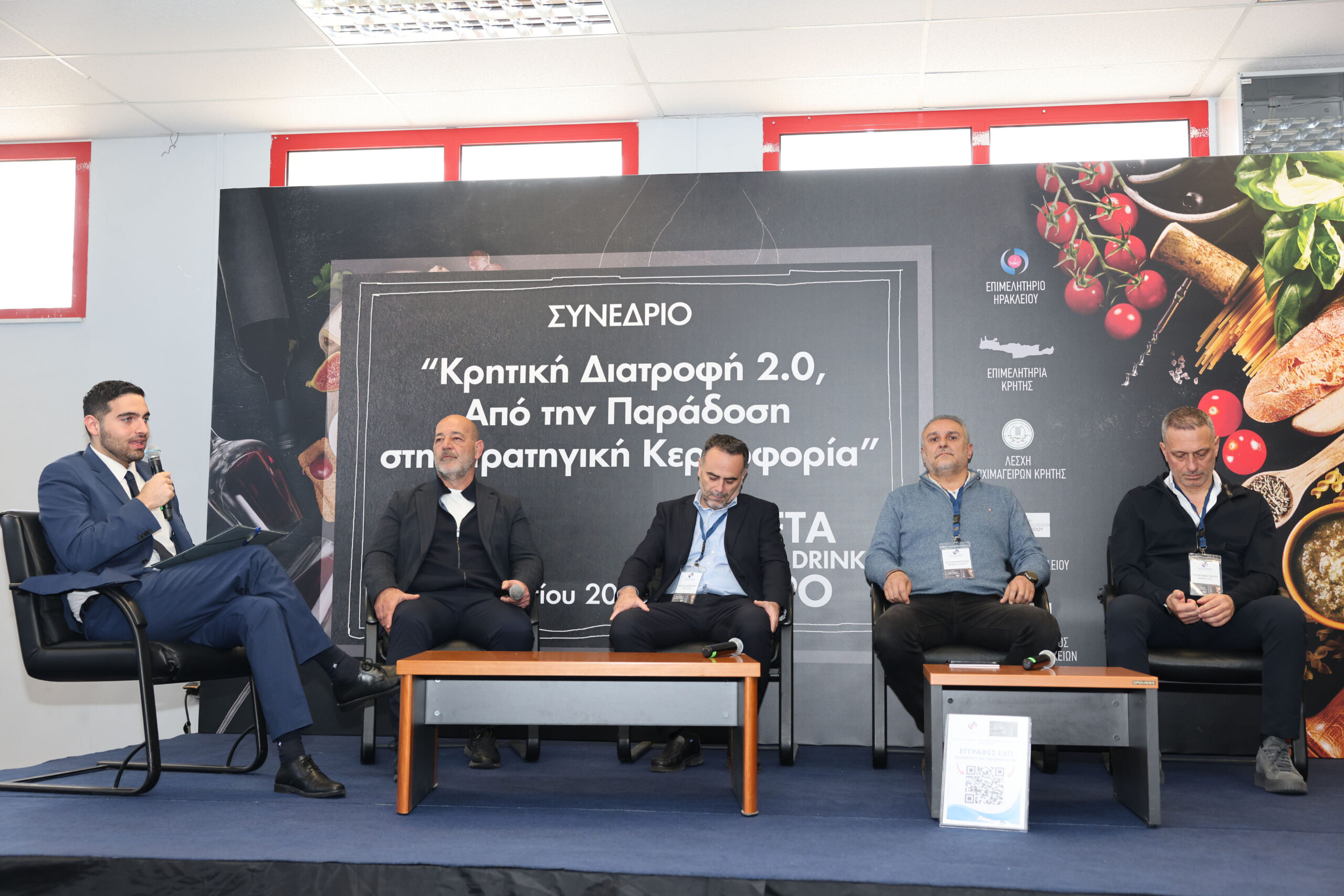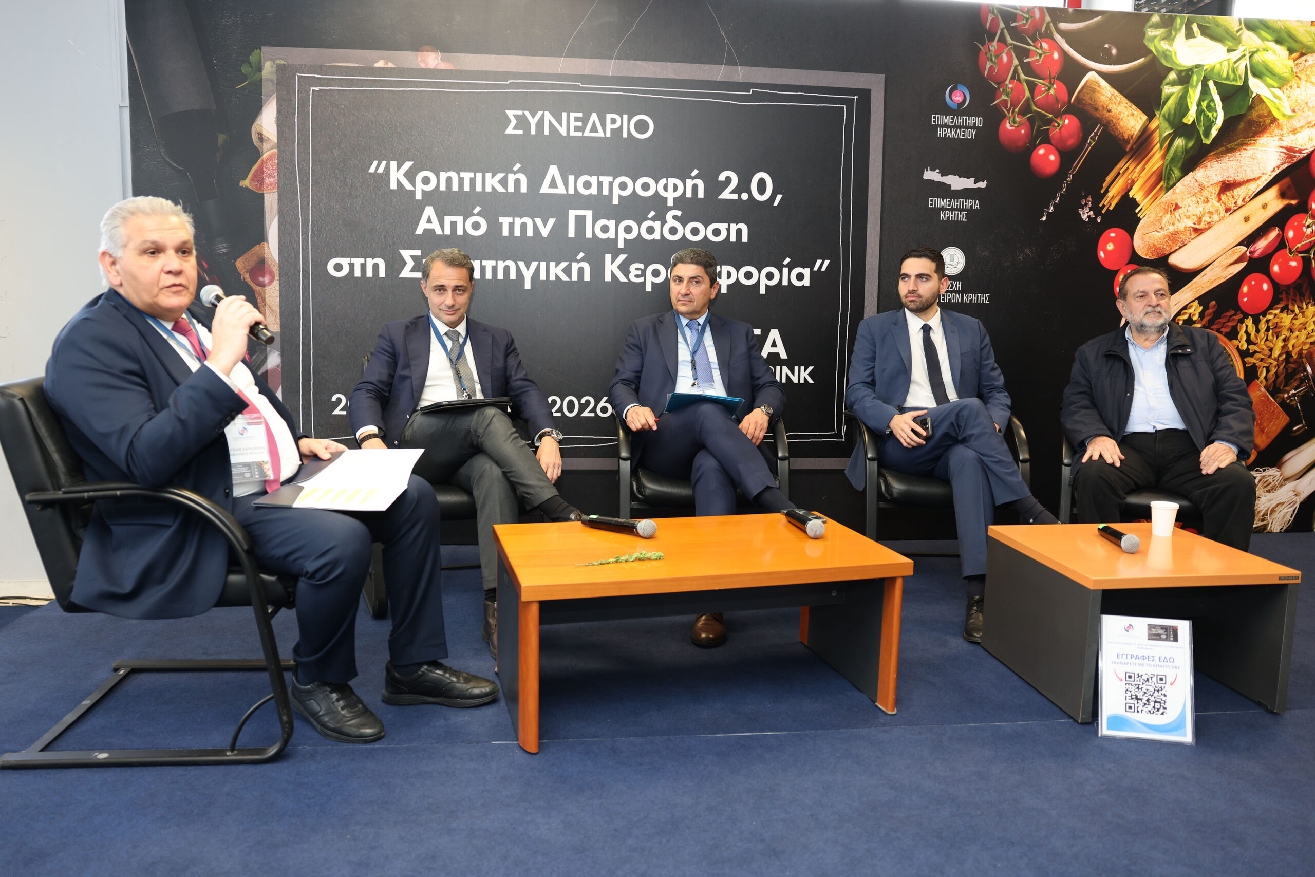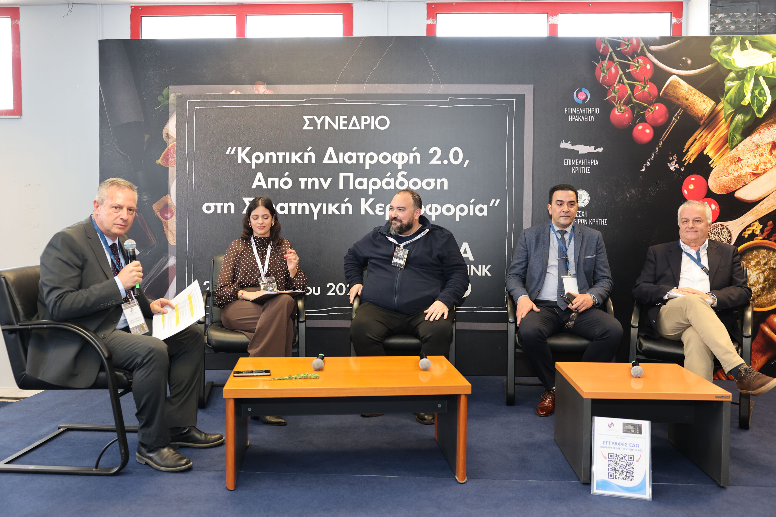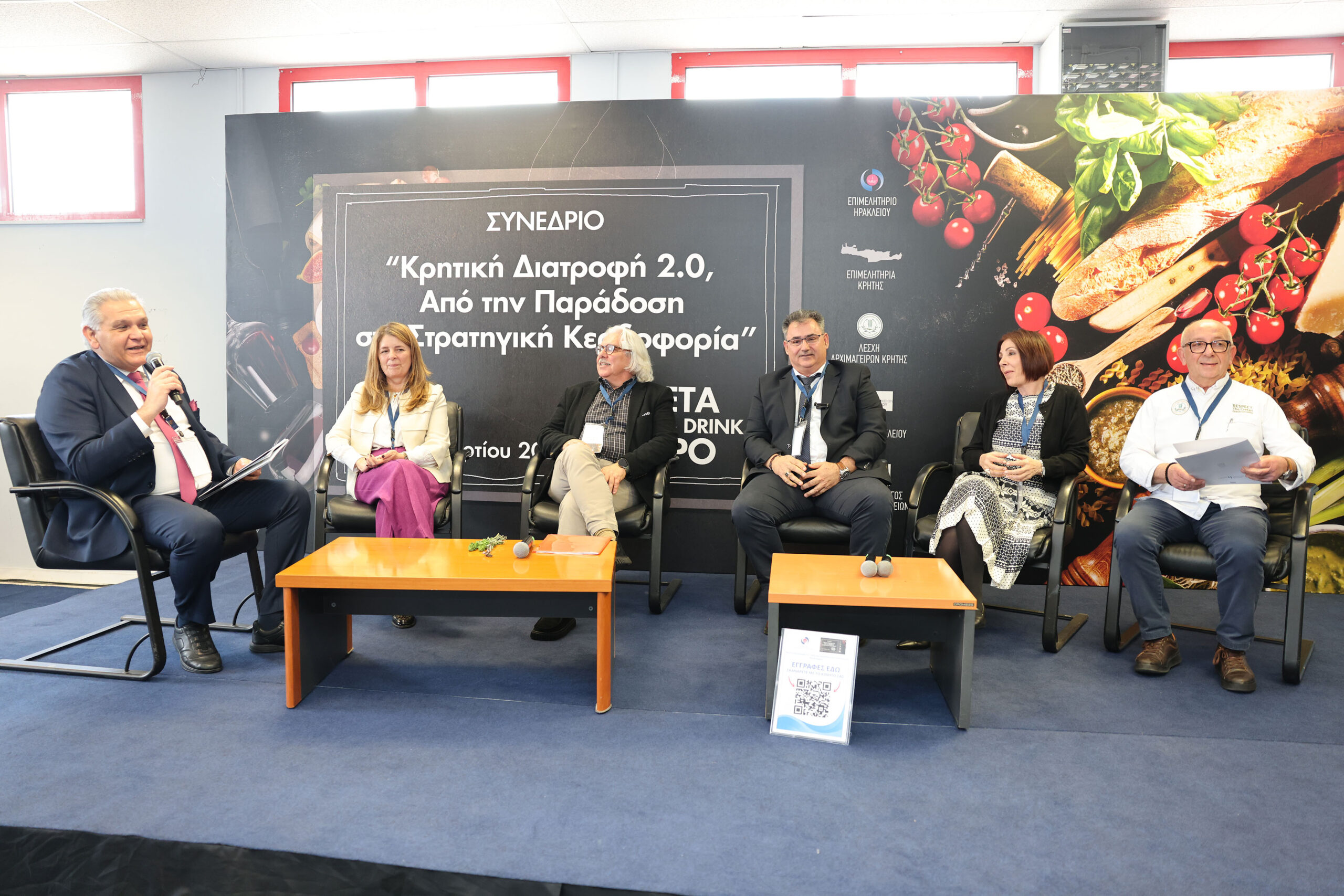 Με απόλυτη επιτυχία και τη συμμετοχή παραγωγικών δυνάμεων του νησιού, ολοκληρώθηκαν οι εργασίες του συνεδρίου «Κρητική Διατροφή 2.0: Από την Παράδοση στη Στρατηγική Κερδοφορία», που διοργάνωσε το Επιμελητήριο Ηρακλείου σε συνεργασία με την Περιφέρεια Κρήτης, στο πλαίσιο της Creta Food & Drink Expo στο Διεθνές Εκθεσιακό Κέντρο Κρήτης.