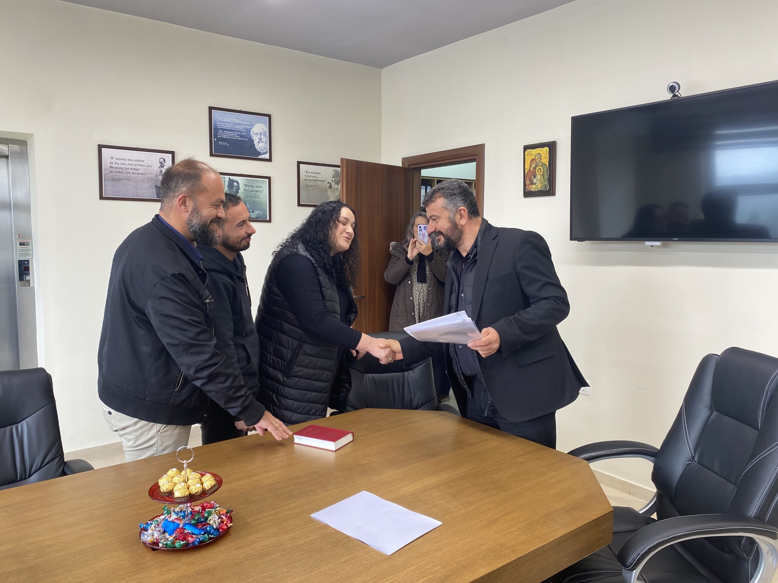Μετά το πέρας της ορκωμοσίας τους, ο Δήμαρχος, Μιχάλης Κοκολάκης, καλωσόρισε τους νέους υπαλλήλους, με ευχές για κάθε επιτυχία στα καθήκοντα που αναλαμβάνουν.