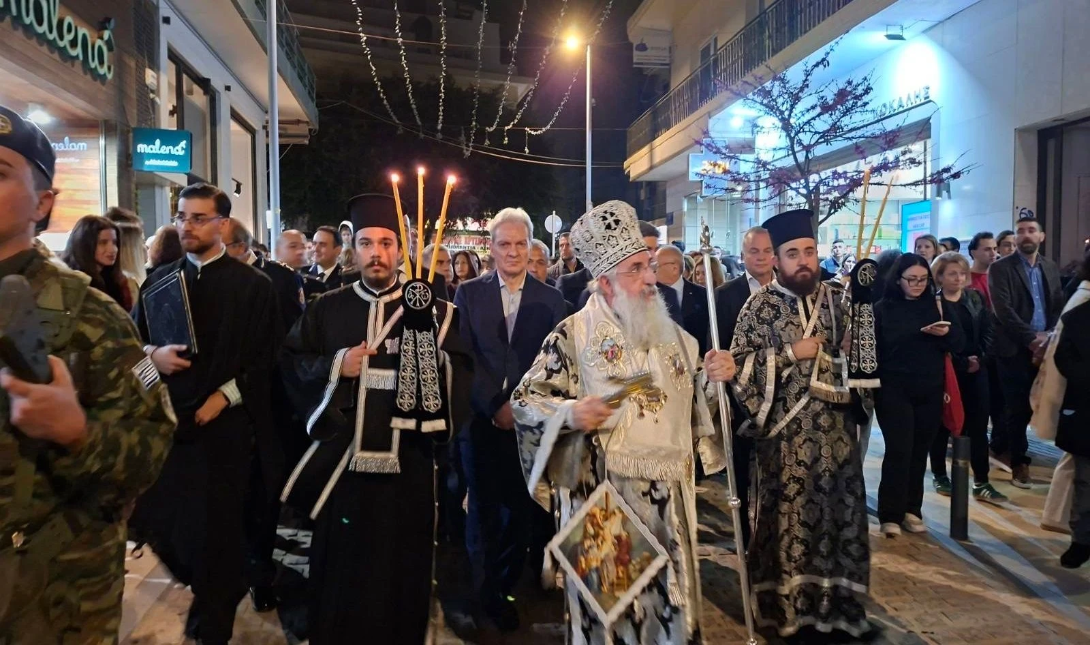 Μέσα σε κλίμα βαθιάς κατάνυξης και συγκίνησης, τελέστηκε το βράδυ της Μεγάλης Παρασκευής στον Ιερό ναό του Αγίου Μηνά η Ακολουθία του Επιταφίου Θρήνου, χοροστατούντος του Σεβασμιότατου Αρχιεπισκόπου Κρήτης Ευγένιου, παρουσία του Δημάρχου Ηρακλείου Αλέξη Καλοκαιρινού, μελών της Δημοτικής Αρχής, εκπροσώπων φορέων, αρχών και πλήθους πιστών.