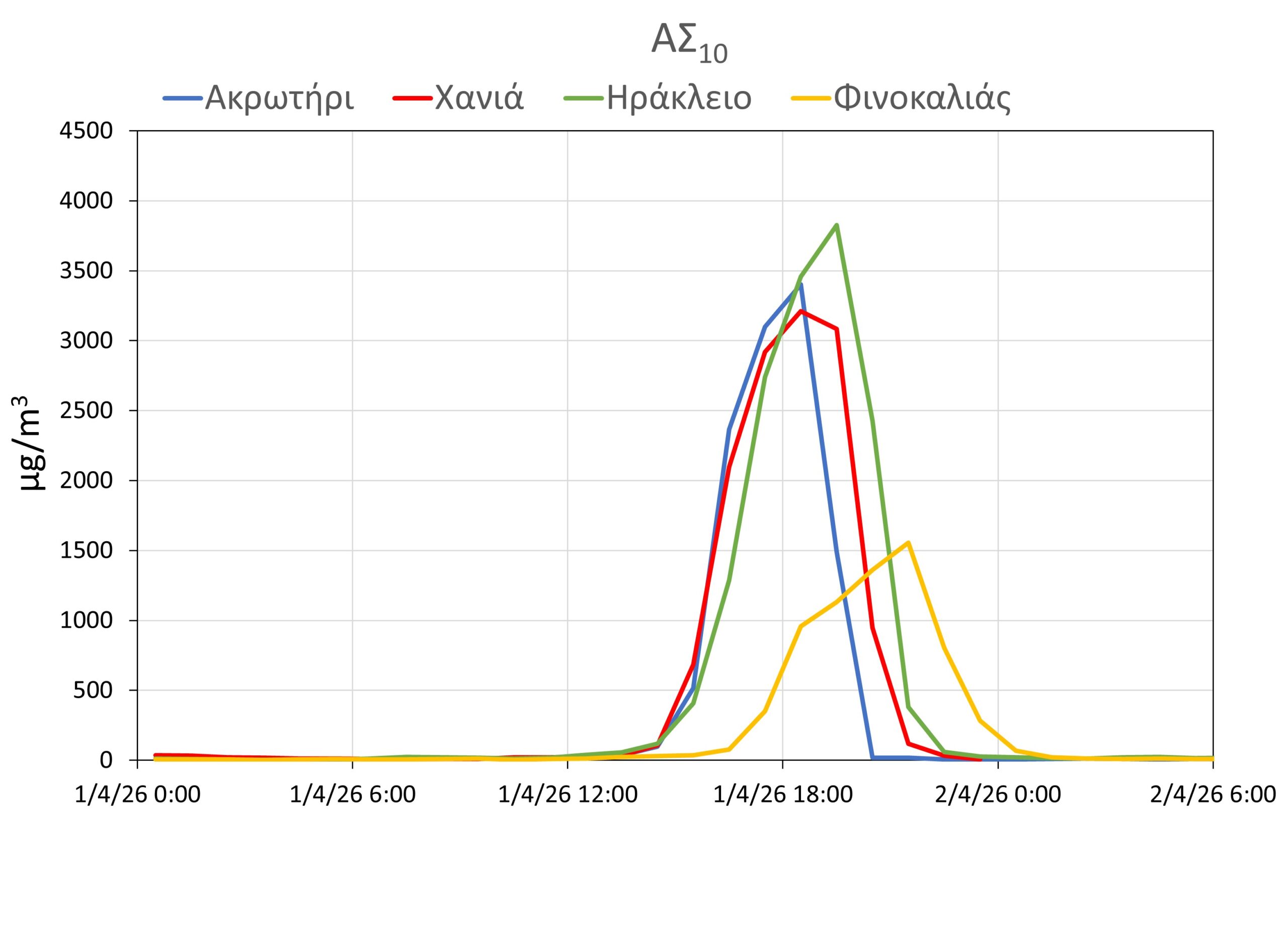 Οι τιμές στα στα Χανιά έφτασαν τις 3402 μg/m3 και στο Ακρωτήρι, 3826 μg/m3