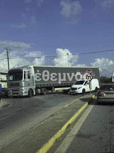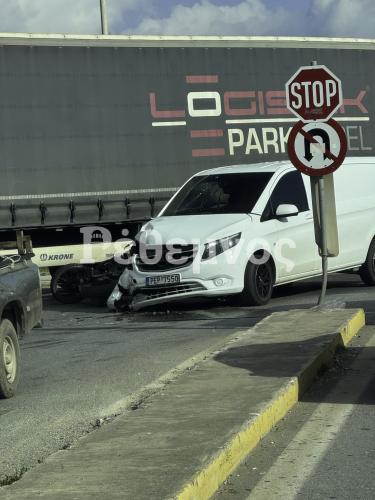 Σύμφωνα με τις πρώτες πληροφορίες, στο περιστατικό ενεπλάκησαν ένα βαν και μία νταλίκα, με τις αρχικές αναφορές να κάνουν λόγο για υλικές ζημιές.