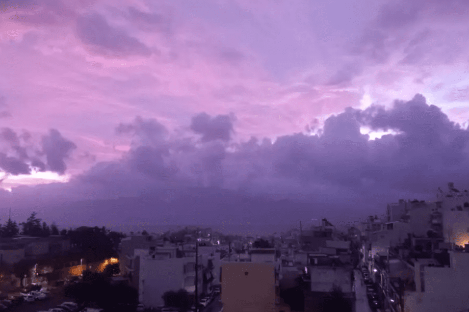 Ξημέρωμα Δευτέρας 9 Δεκεμβρίου στον Άγιο Νικόλαο και ο ουρανός έγινε μωβ
