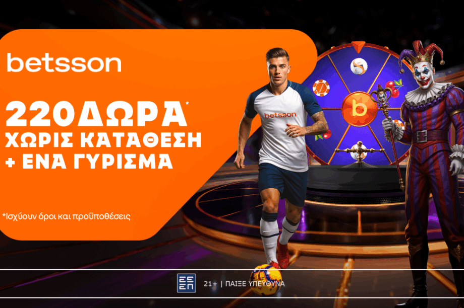 Η Betsson σε υποδέχεται με μια συναρπαστική προσφορά* που κάνει τη διαφορά: 220 δώρα* χωρίς καμία κατάθεση + ένα Γύρισμα, για να απολαμβάνεις στο…