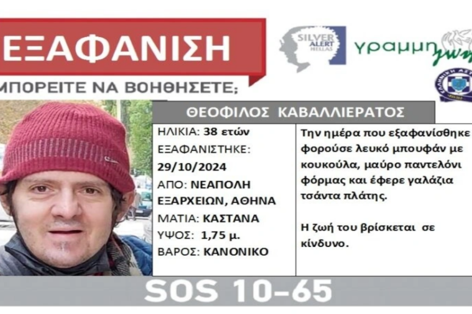 Πρόκειται για τον Θεόφιλο Καβαλλιεράτο, τα ίχνη του οποίου χάθηκαν το μεσημέρι της Τρίτης 29/10/24