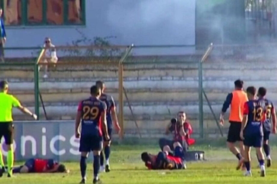 Απίστευτα σκηνικά στην αναμέτρηση Τίρανα – Βλαζνία, με τρεις παίκτες των παίκτες των φιλοξενούμενων να τραυματίζονται από κροτίδες