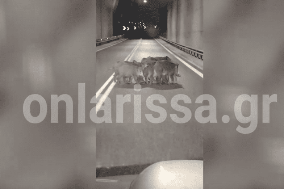 Ο οδηγός του οχήματος πρόλαβε να σταματήσει μπροστά στην αγέλη αγριογούρουνων