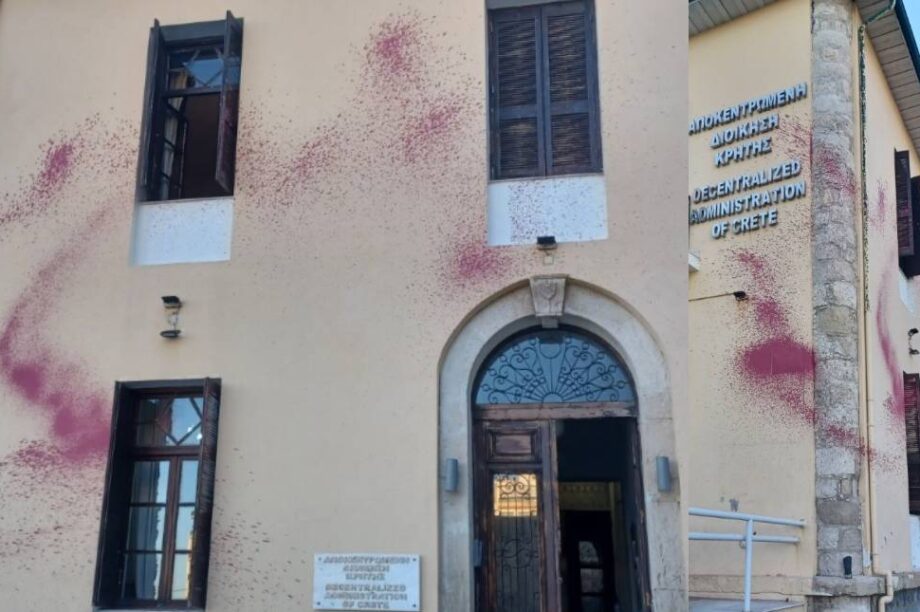 Οι δράστες πέταξαν κόκκινη μπογιά και έγραψαν συνθήματα υπέρ του παλαιστινιακού λαού