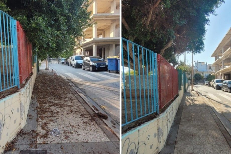 Συνεργείο του δήμου προσπαθεί να απομακρύνει την κολώνα