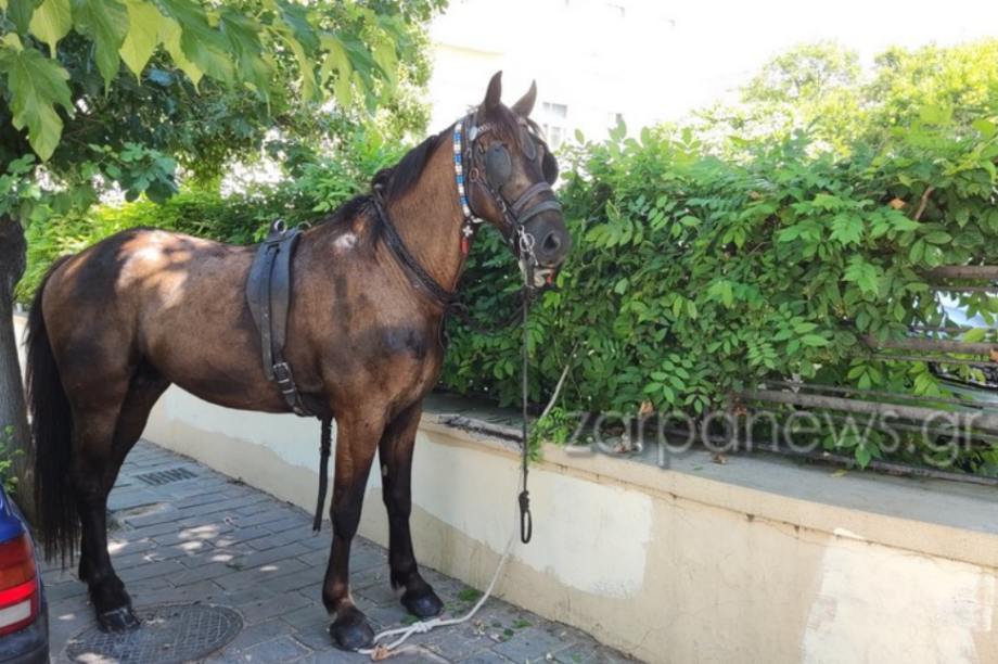 Πρόκειται για τον Ηρακλή, ένα άλογο ειδικά εκπαιδευμένο για άμαξες, που κάνει βόλτες τους τουρίστες στην παλιά πόλη των Χανίων