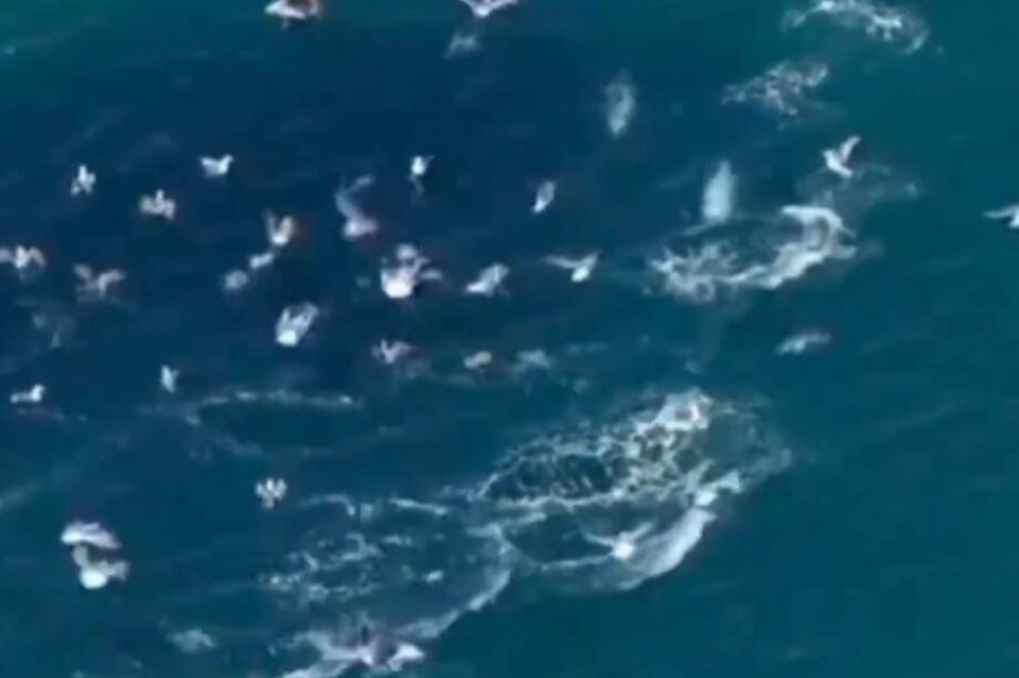 Η ομάδα των ψαριών διακρίνεται σε μια μεγάλη σκιά ακριβώς κάτω από την επιφάνεια του νερού