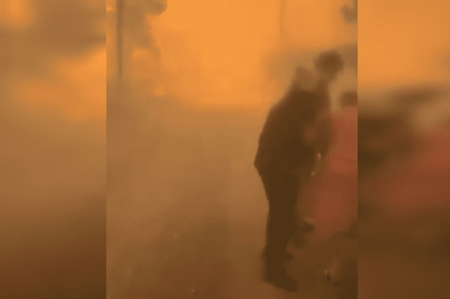 Οι σκηνές που αποτυπώνονται στο βίντεο είναι πραγματικά ανατριχιαστικές με την ηλικιωμένη γυναίκα μέσα από ένα σύννεφο καπνού