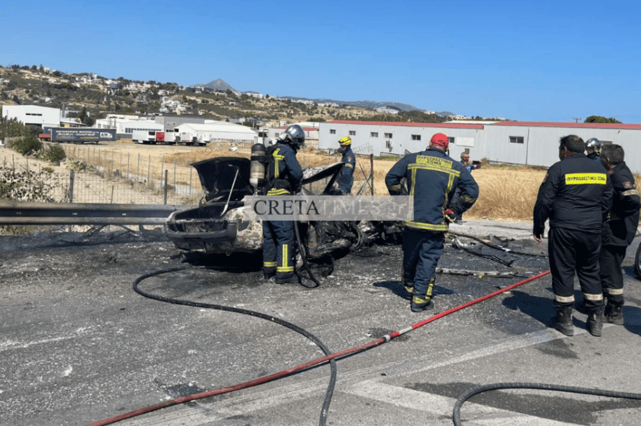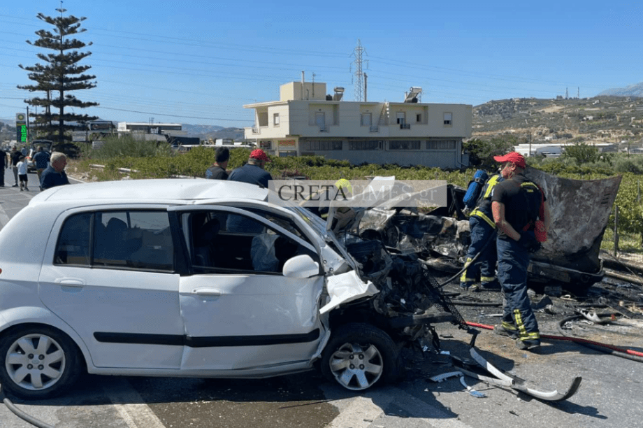 Αμέσως μετά τη σύγκρουση των οχημάτων εκδηλώθηκε πυρκαγιά στο ένα από τα δύο εμπλεκόμενα αυτοκίνητα