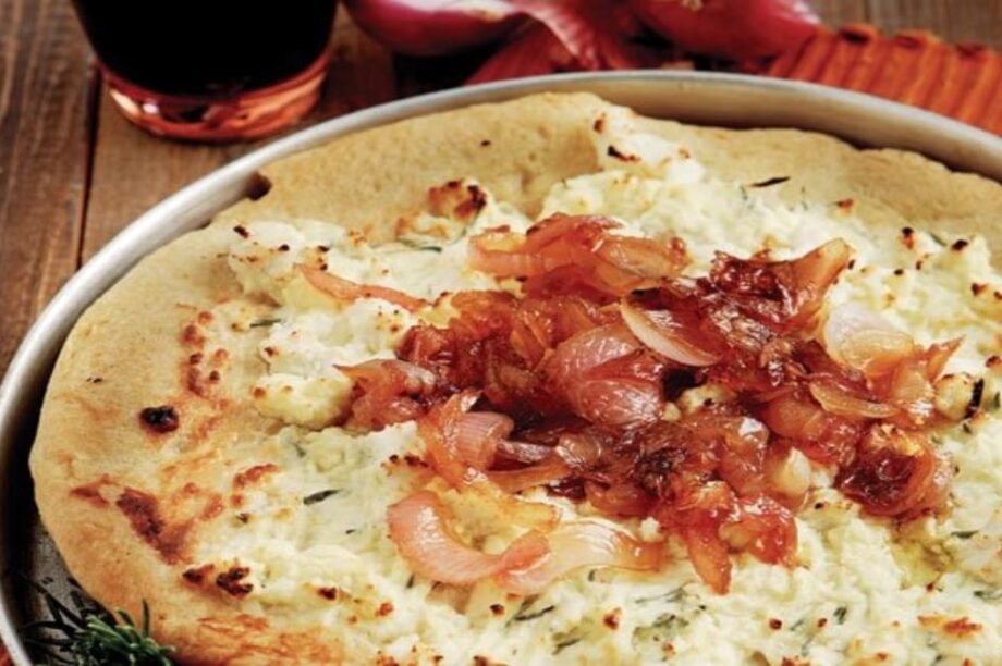Τόσο αλμυρή, λόγω τυριών, όσο και γλυκιά χάρη στα καραμελωμένα κρεμμύδια