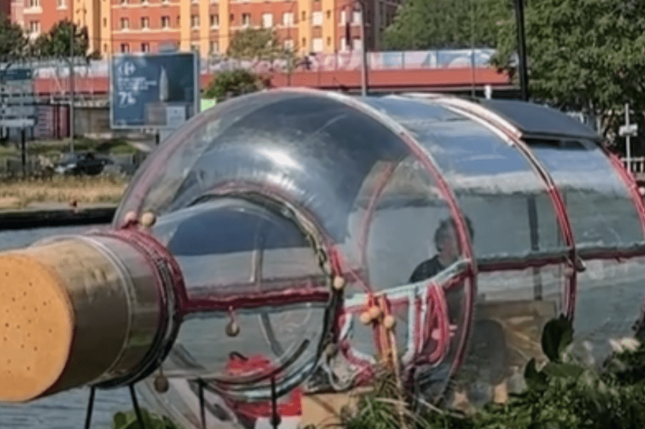 Την περασμένη Πέμπτη, ο 53χρονος ανέβηκε μέσα σε ένα γιγαντιαίο γυάλινο μπουκάλι στο Canal Saint-Denis έξω από το Ολυμπιακό Στάδιο