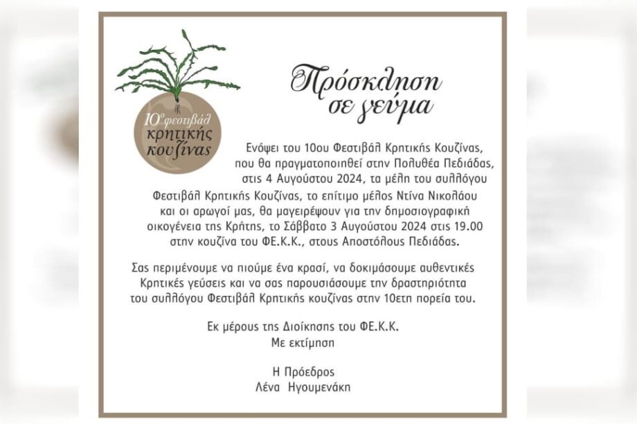 Έρχεται το 10ο Φεστιβάλ Κρητικής Κουζίνας