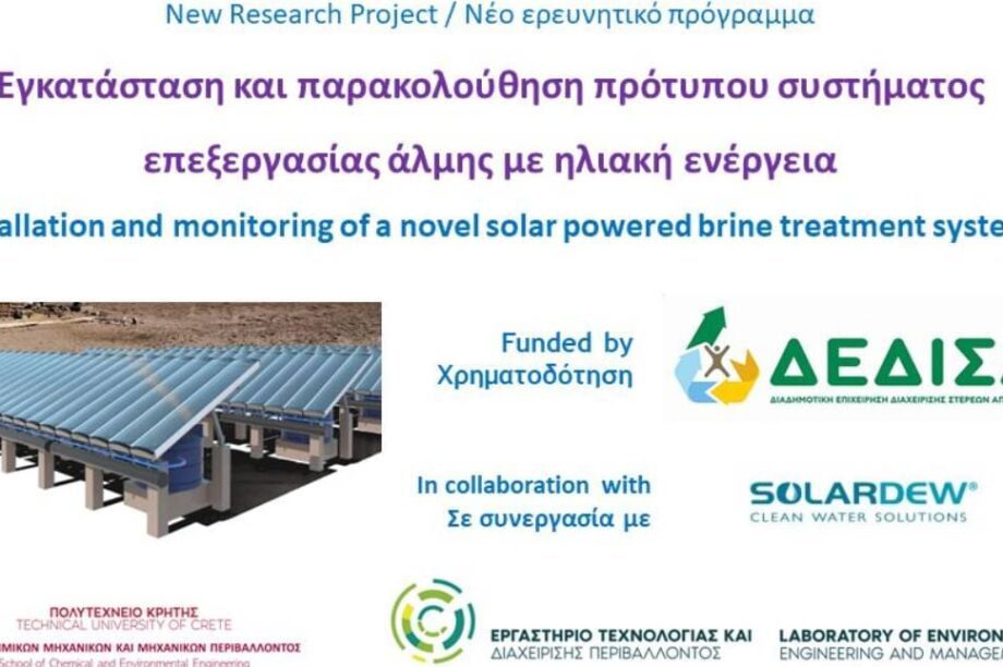 Εγκατάσταση και παρακολούθηση πρότυπου συστήματος επεξεργασίας άλμης με ηλιακή ενέργεια