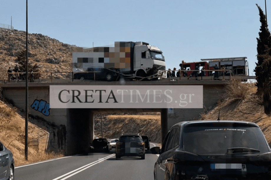 Άγνωστο παραμένει εάν ο οδηγός βρίσκεται μέσα στο φορτηγό