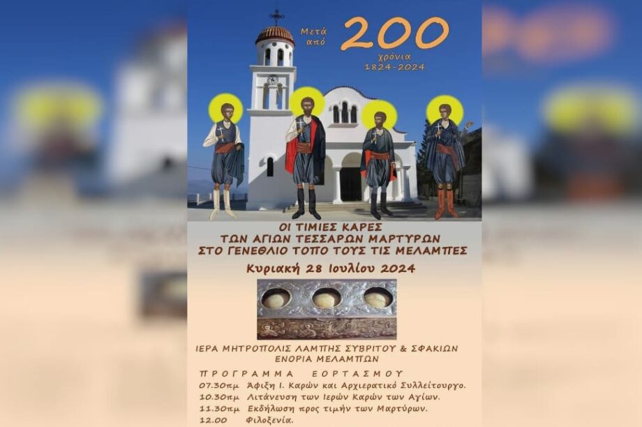 Η υποδοχή θα πραγματοποιηθεί το πρωί της Κυριακής, 28ης Ιουλίου 2024