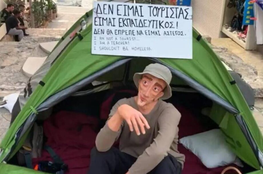 Η εικαστικός δημιούργησε ένα γλυπτό σε φυσικό μέγεθος άντρα ο οποίος βρισκόταν εντός μιας σκηνής μάλιστα δίπλα ακριβώς υπήρχαν ενοικιαστήρια