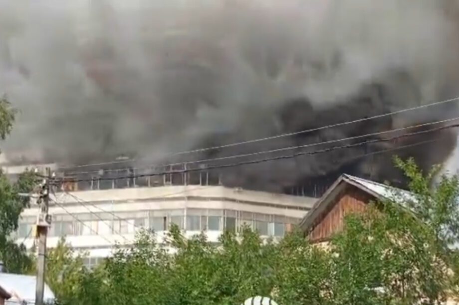 Μαύρος καπνός υψωνόταν από το κτήριο κοντά στη Μόσχα το οποίο είχε τυλιχθεί στις φλόγες και κάποιοι είχαν εγκλωβιστεί